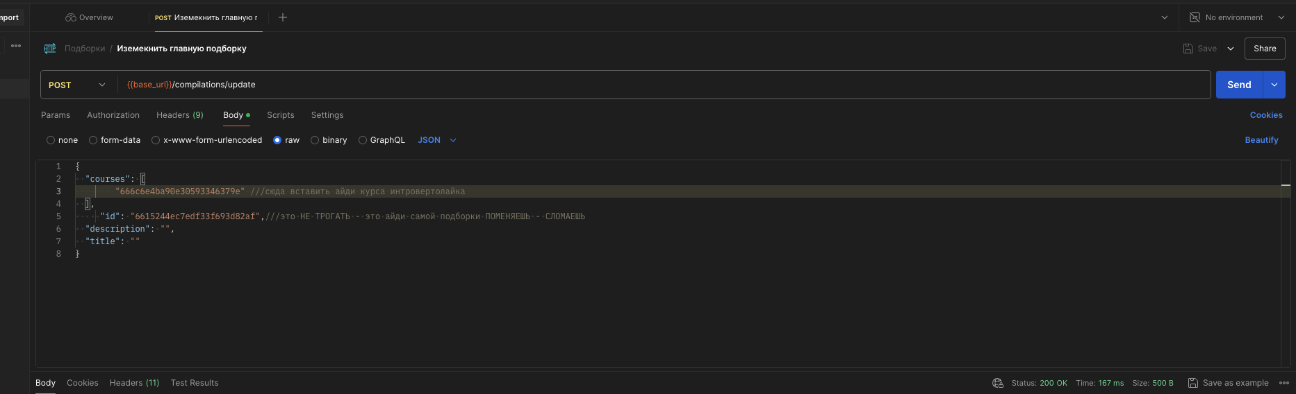Если видим снизу вот такое - значит это ошибка - не волнуйтесь, вы ничего не сломали) читаем что в message, если тоже самое что на скрине - просто проверьте правильно ли ввели айди курса, вы ввели его неправильно. Поменяйте и жмякайте Send снова